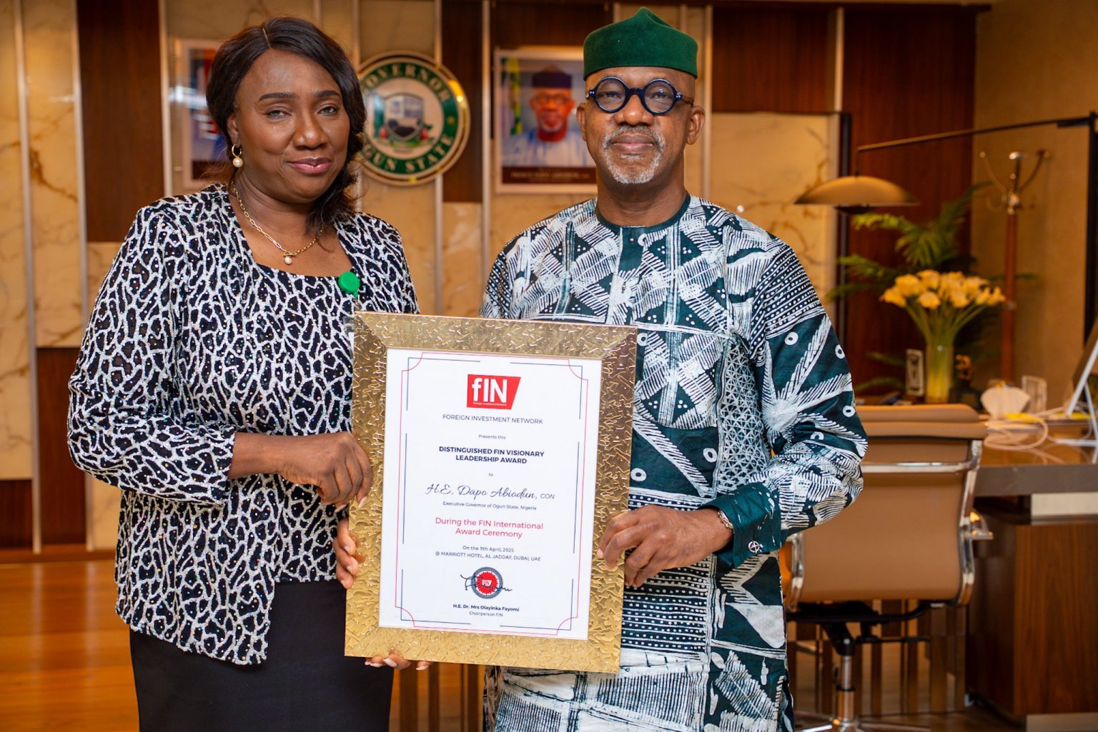 Abiodun expressed appreciation to the Chairperson of FIN for the award, emphasizing that it was an indication that the modest efforts of the administration in developing the state are being recognized, and he called on the organisation to continue to attract more investors to come and do business in the country.