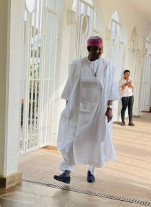 The governor, dressed in his signature flowing white babanriga and a red Kwankwasiyya cap, was spotted by our correspondent making his way to the President’s office at 4:13pm local time.
